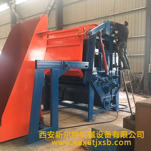 在清理仓内加入规定数量的工件后,大门关闭,机器启动,工件被滚筒带动,开始翻转,同时抛丸器高速抛出的弹丸形成扇形束,均匀地打击在工件表面上,从而达到清理的目的。